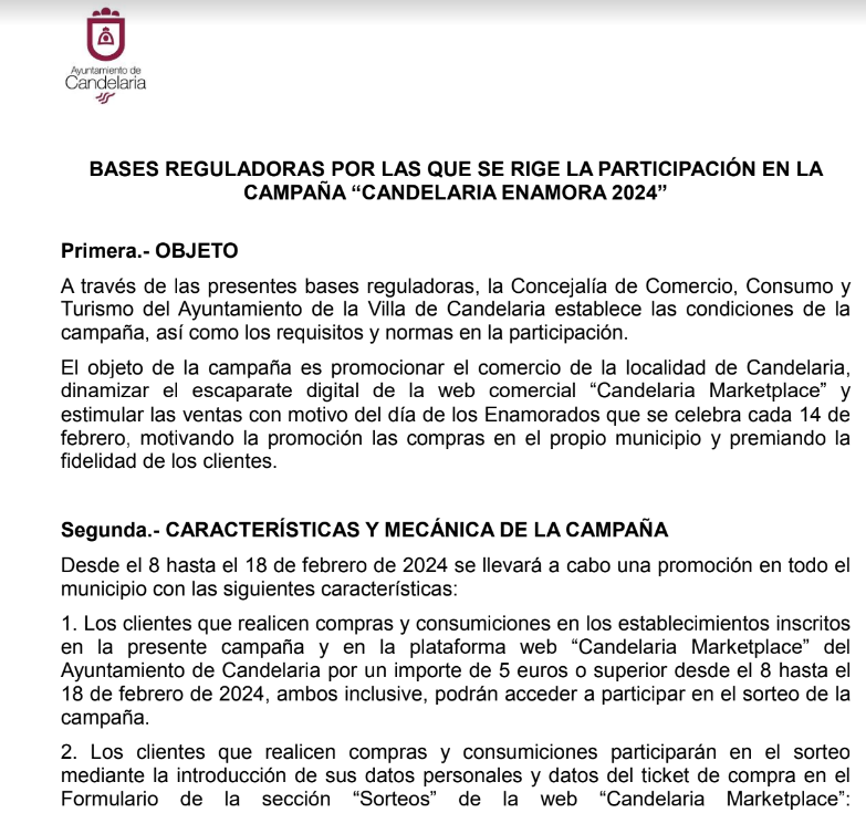 Todos los negocios del municipio tienen la oportunidad de unirse a esta campaña, dirigida tanto a empresas como a autónomos y profesionales que se dediquen a la venta al por menor de bienes y servicios en el ámbito local. Para participar, es necesario cumplir una serie de requisitos, entre ellos estar inscritos en la web «Candelaria Marketplace» del Ayuntamiento, cumplir con la normativa vigente, y estar al día con las obligaciones fiscales y de seguridad social.