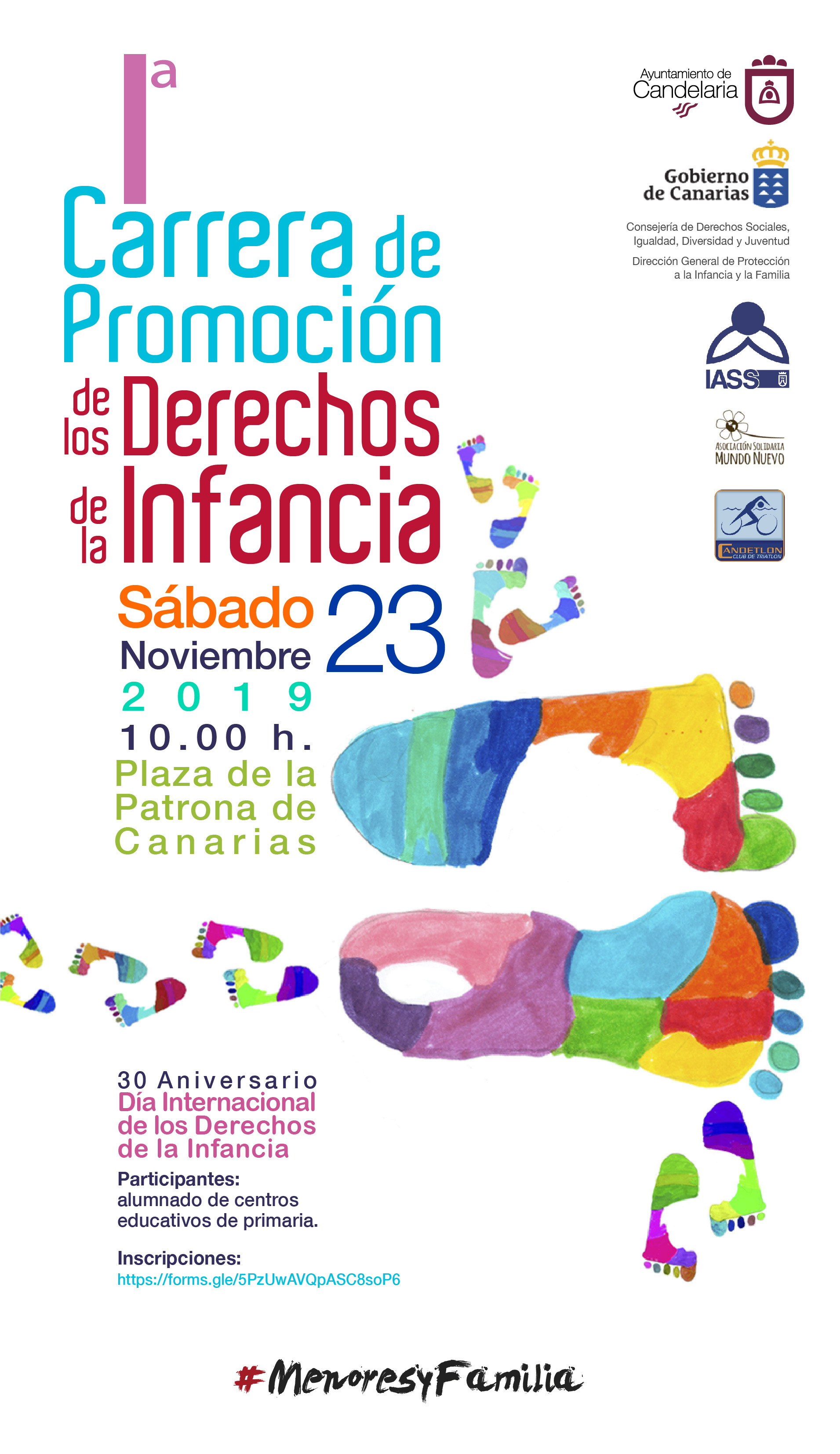 Infancia Sábado 23. 9.00 1ª CARRERA DE PROMOCIÓN DE LOS DERECHOS DE LA INFANCIA. Plaza de la Patrona de Canarias. Inscripción hasta el 8 de noviembre para alumnado de primaria. Colabora: CLUB DE TRIATLON DE CANDELARIA, CANDETLON, ASOCIACIÓN MUNDO NUEVO Leer más...